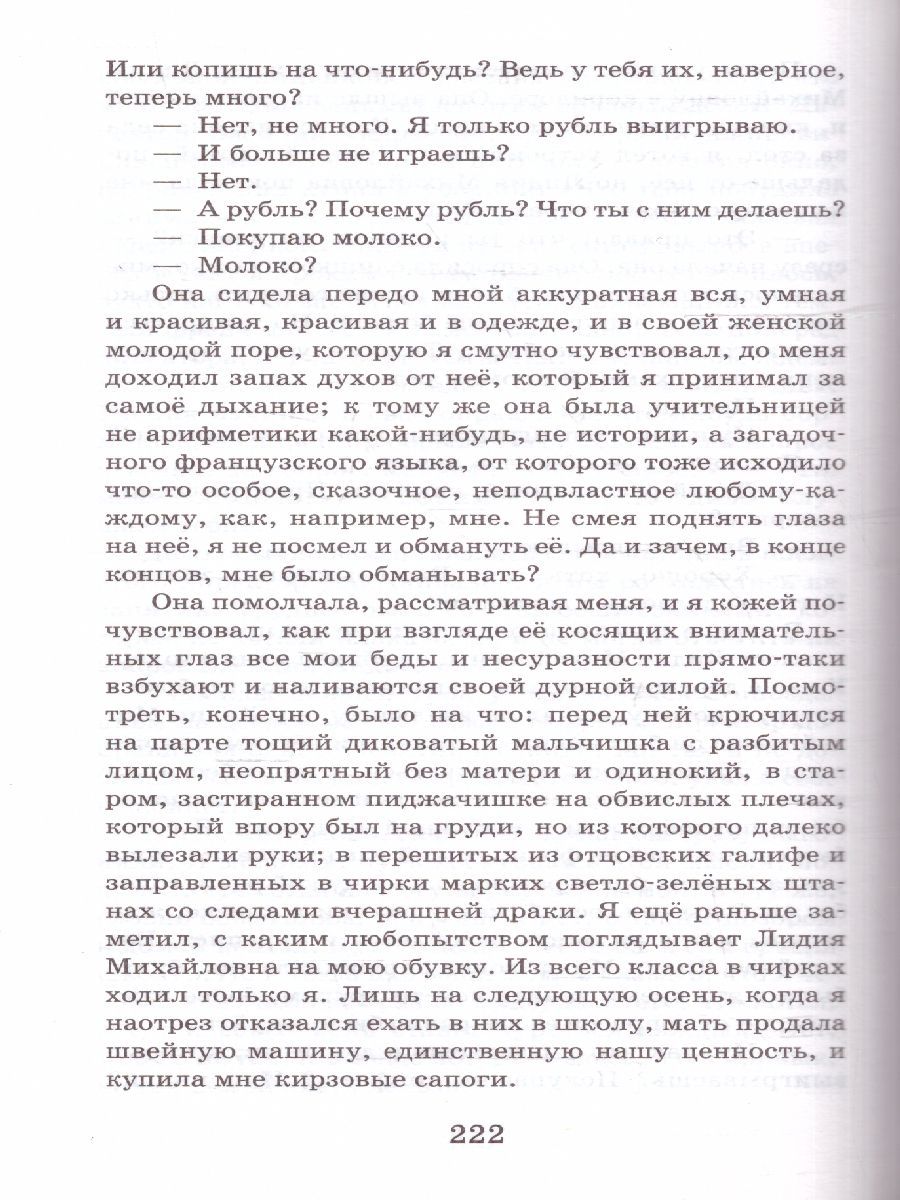 Валентин Григорьевич Распутин (1937–2015) – русский писатель, публицист, общественный деятель. После окончания начальной школы в своём родном селе Аталанка Иркутской области будущий писатель вынужден был переехать в районный центр Усть-Уда, чтобы продолжать учёбу в средней школе. Это был тяжёлый период для маленького мальчика: жизнь у чужих людей, полуголодное существование, невозможность одеваться и питаться, как положено, ссоры с местной ребятнёй. Всё, что описывается в рассказе «Уроки французского» (1973), можно считать реальными событиями, ведь именно такой путь прошёл сам Валентин Распутин. Герои повести «Последний срок» (1970) стоят у своеобразной жизненной черты, у которой рано или поздно оказывается человек. С чем подойдёт каждый к этой черте? Нравственность и безнравственность, эгоизм и бескорыстие, чёрствость и неравнодушие – вот основные темы произведений Валентина Распутина. В книгу также вошли рассказы «Век живи, век люби», «Я хотел спросить у Лёшки», «Мама куда-то ушла» и другие. Все произведения, вошедшие в сборник, включены в школьную программу для обязательного чтения.Характеристики