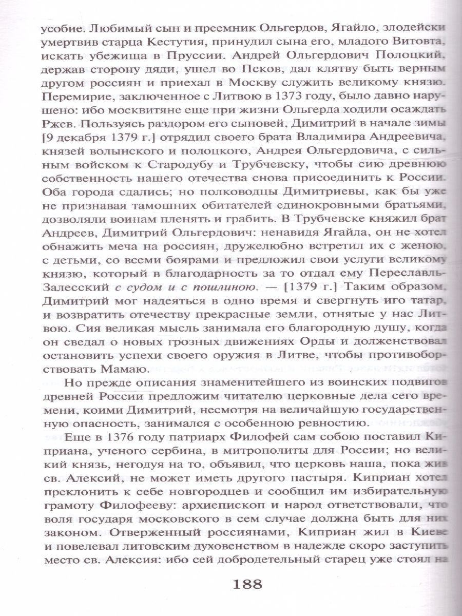 Николай Михайлович Карамзин (1766-1826) – российский историк, писатель, поэт, учёный, реформатор русского языка. Именно Карамзину мы обязаны появлением в русском алфавите буквы "ё". В 1803 году император Александр I присвоил Николаю Карамзину звание российского историографа. С того же времени началась работа над самым известным трудом Карамзина – "История Государства Российского" (1818-1829). В предисловии к своему труду Карамзин пояснил, чем важна история и какую роль она играет в жизни каждого человека. А также отметил, что захватывающая история России не менее интересна и событийна, чем мировая. "История государства Российского есть не только произведение великого писателя, но и подвиг честного человека", – писал о Карамзине А. С. Пушкин. "История" вдохновила Пушкина на создание трагедии "Борис Годунов". В книгу вошли отдельные тома и главы произведения "История государства Российского".Характеристики