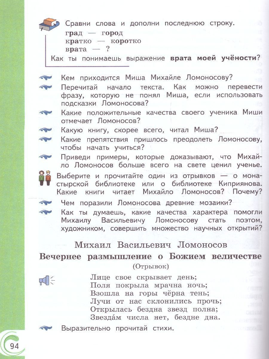 Учебник реализует содержание Примерной рабочей программы для 3 класса по учебному предмету "Литературное чтение на родном (русском) языке", входящему в предметную область "Родной язык и литературное чтение на родном языке". Учебник знакомит третьеклассников с произведениями русской литературы, в которых наиболее ярко отражены русский национальный характер, обычаи, традиции русского народа. Каждый из проблемно-тематических блоков учебника содержит ключевые понятия, отражающие духовную и материальную культуру русского народа в их исторической взаимосвязи. Работа с учебником способствует обогащению речи учащихся, развитию их речевой культуры и коммуникативной компетенции. Соответствует ФГОС начального общего образования, утверждённому Приказом №286 от 31.05.2021 г. 2-е издание, переработанное.Характеристики