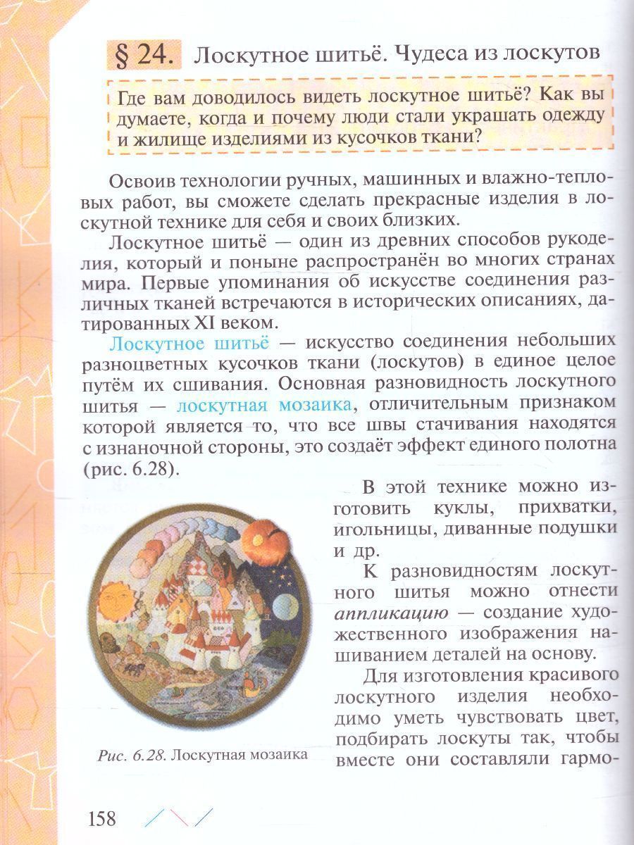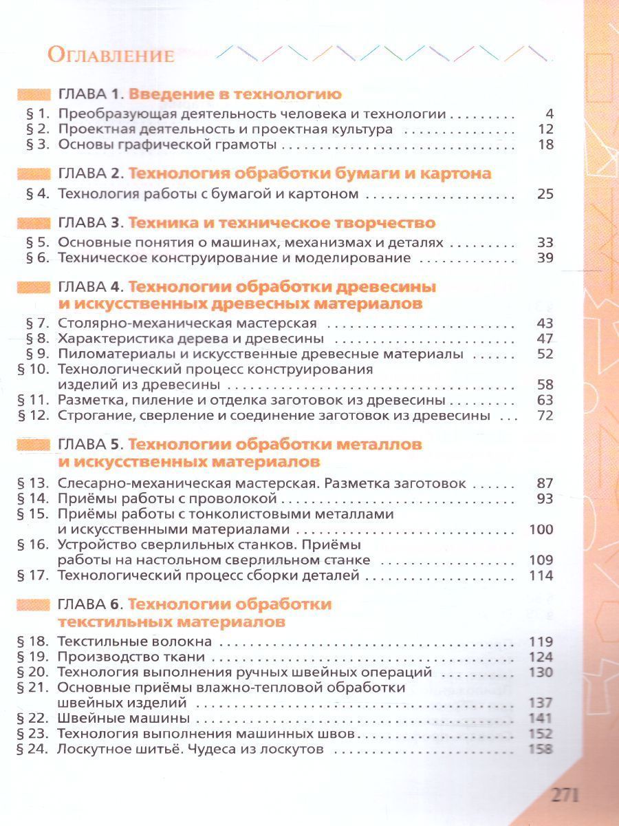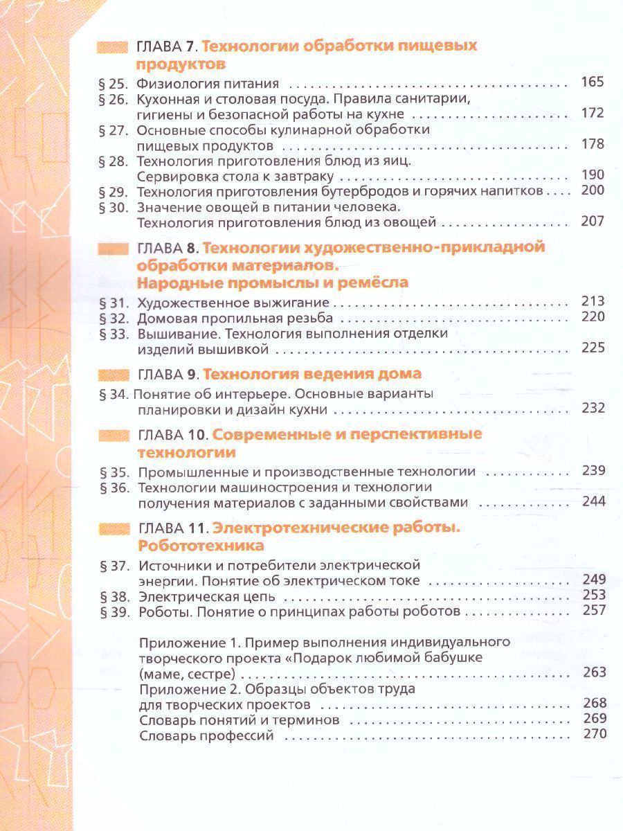 Учащиеся знакомятся с различными технологиями: промышленными, производственными, машиностроения и получения материалов с заданными свойствами; технологиями обработки конструкционных, текстильных материалов и пищевых продуктов. Получают сведения об электротехнических работах, роботах, использовании электроники в робототехнике. Методический аппарат учебника составляют вопросы для самопроверки, система заданий, включающих исследовательские, графические, практические задания, задания с использованием Интернета, а также темы проектов. Учебник содержит рубрику "Полезная информация", в которую помещён дополнительный материал, словари профессий и основных понятий и терминов. Учебник соответствует Федеральному государственному образовательному стандарту основного общего образования и включён в Федеральный перечень.Характеристики