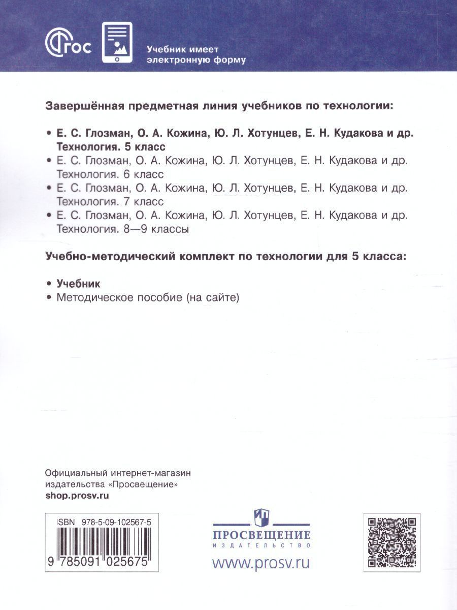 Технология 5 класс. Учебник (ФП2022)