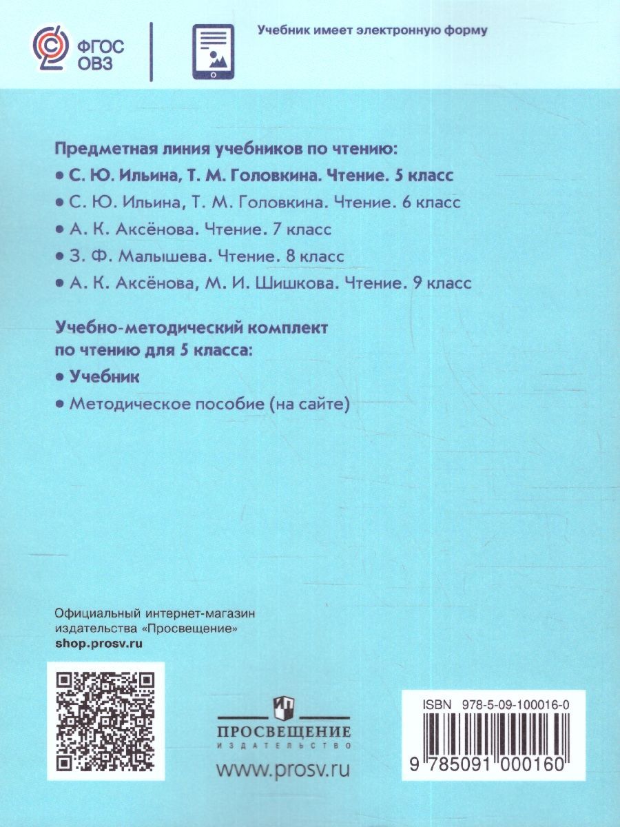 "Чтение 5 класс. Учебник для обучающихся с интеллектуальными нарушениями. УМК Чтение (5-9). ФГОС ОВЗ". Учебник предназначен для обучающихся с интеллектуальными нарушениями и обеспечивает реализацию требований адаптированной основной общеобразовательной программы в предметной области «Язык и речевая практика» в соответствии с ФГОС образования обучающихся с интеллектуальными нарушениями. В учебнике реализуется преемственность в отборе и структурировании художественных и научно-художественных текстов в соответствии с принципами тематического и жанрового разнообразия, представленная в учебниках чтения для 2–4 классов. Структура каждого из 14 разделов учебника построена таким образом, что на первом вводном уроке выявляются имеющиеся у обучающихся знания и представления по теме раздела, на последнем – закрепляются и систематизируются знания, полученные в ходе разбора и анализа содержания прочитанных произведений. С целью совершенствования техники чтения в каждый из разделов включена рубрика «Читай самостоятельно!». Основное целевое назначение вопросов и заданий, представленных ко всем произведениям учебника, состоит в коррекции недостатков познавательной деятельности обучающихся с интеллектуальными нарушениями и прежде всего развитии мыслительной и речевой деятельности; коммуникативных навыков; нравственных чувств и нравственного сознания.Характеристики