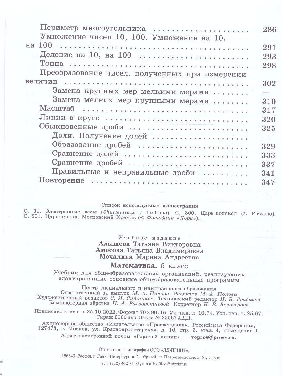 Математика 5 класс. Учебник (для обучающихся с интеллектуальными нарушениями)