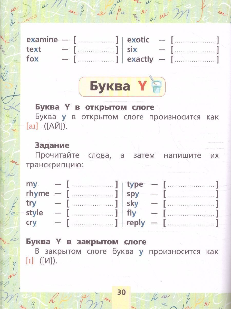 Данная книга представляет собой сборник из тренажеров по чтению и письму английских букв и слов. В пособии в наглядной форме изложены основные правила чтения английских букв и буквосочетаний, сопровождаемые заданиями и яркими иллюстрациями. В процессе обучения школьники не только научатся правильно читать английские слова, но и освоят знаки современной международной фонетической транскрипции. Издание содержит прописи, с помощью которых ребенок сможет потренировать написание букв, и упражнения по чтению. Пособие адресовано учащимся начальной школы и подходит для дополнительного образования в школе и дома.Характеристики