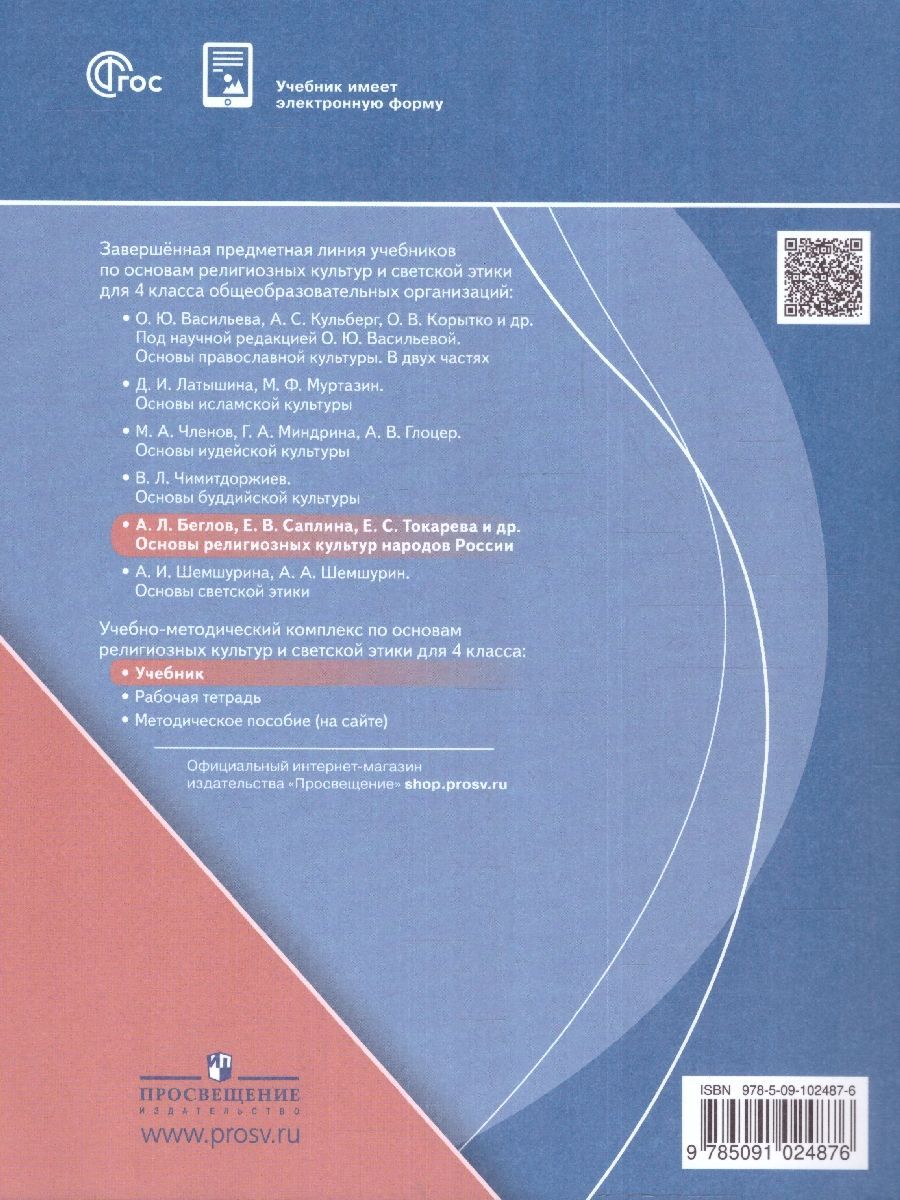 Основы религиозных культур народов России 4 класс. К новому ФП. ФГОС. Учебник разработан в соответствии со всеми требованиями ФГОС НОО. В учебнике с учётом возрастных особенностей учащихся 4 класса даются элементарные представления о возникновении, истории и особенностях религий мира, их влиянии на жизнь людей. Авторы не ставили задачу отражения в учебнике дискуссионных вопросов религиозных учений и религиоведения. Каждый урок включает систему вопросов и заданий для учащихся.Характеристики