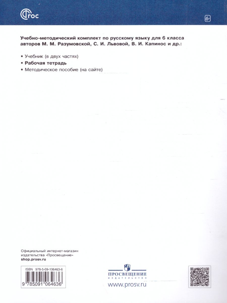Русский язык 6 класс. Орфография. Рабочая тетрадь к новому учебному пособию. УМК"Русский язык. Разумовская М.М. (5-9)". К новому ФП (2023 год). ФГОС. Рабочая тетрадь создана к учебному пособию М. М. Разумовской, С. И. Львовой, В. И. Капинос и др. «Русский язык. 6 класс», соответствующему ФГОС ООО (2021) и Примерной рабочей программе ООО. Она адресована учащимся и предназначена для закрепления и проверки их знаний по орфографии. Разнообразные упражнения рабочей тетради помогают совершенствовать способность понимать и осмыслять чужие высказывания, а также свободно и правильно выражать собственные мысли в устной и письменной форме с учётом разных ситуаций общения и в соответствии с нормами литературного языка.Характеристики