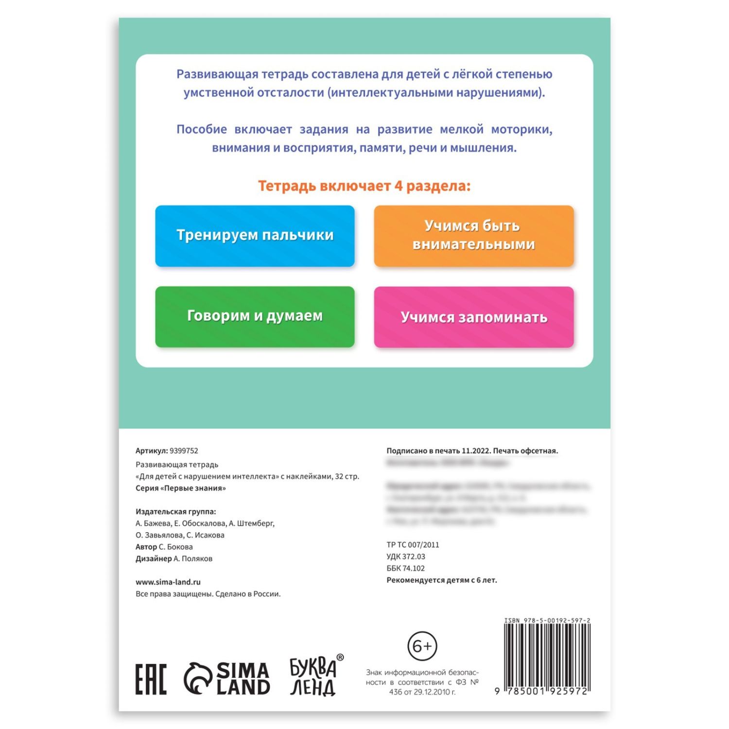 Развивающая тетрадь "Для детей с нарушением интеллекта" с наклейками