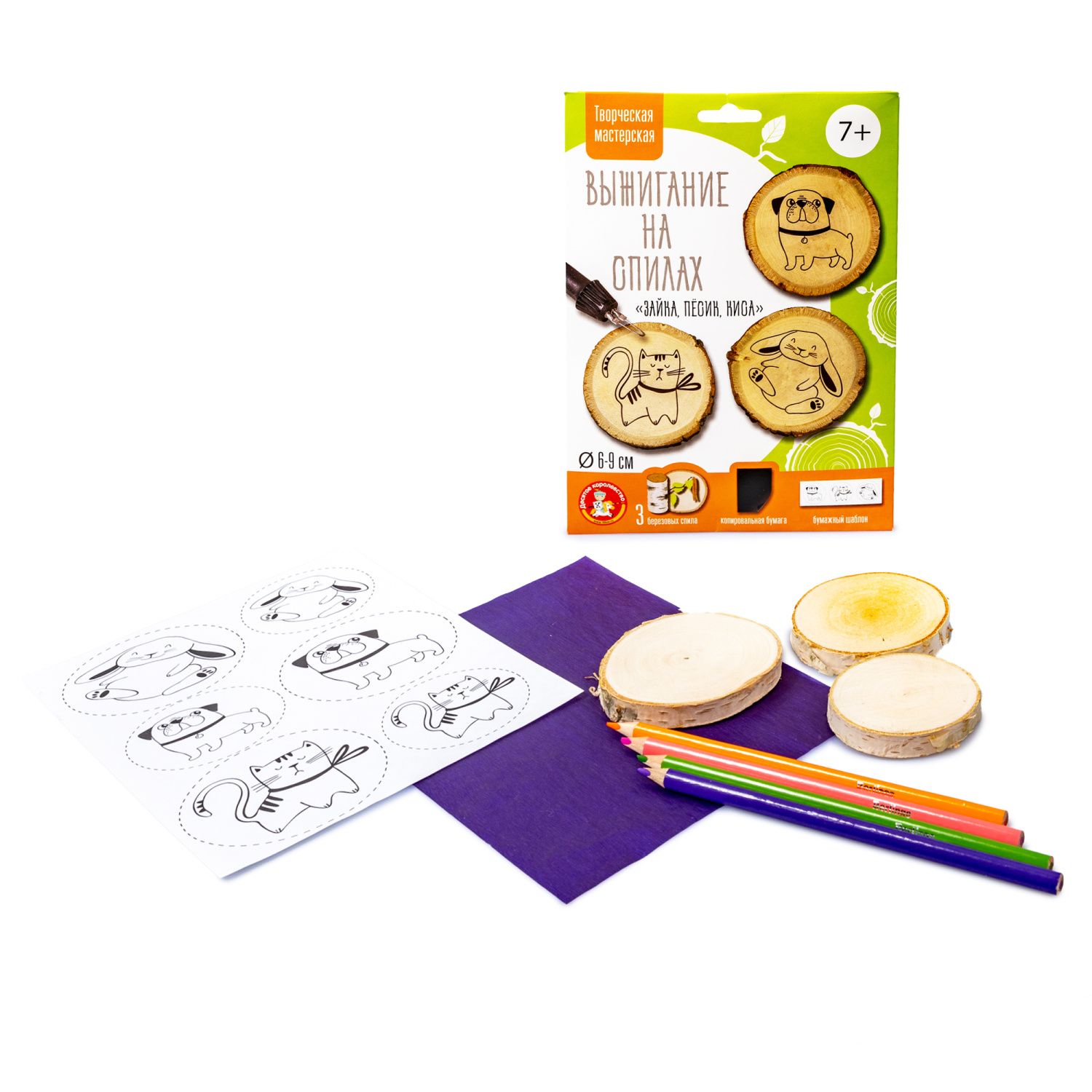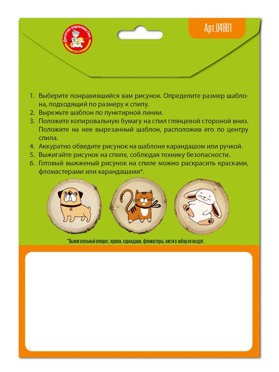 Выжигание на спилах "Зайка, Песик, Киса" (спил малый)(Десятое королевство)