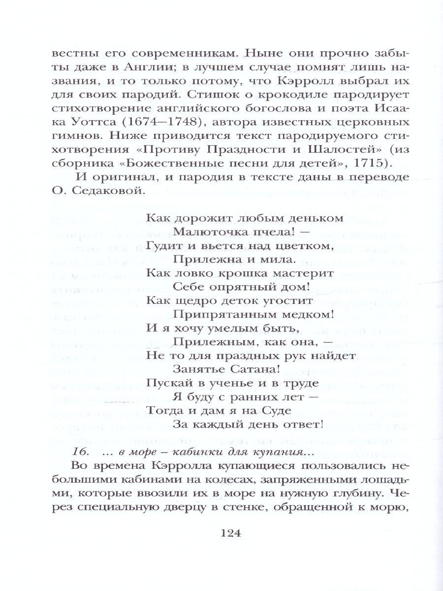 "Алиса в Стране Чудес", повесть-игра, повесть-головоломка, никогда не имела бы такого успеха во всём мире, если бы не юная героиня. Алиса - очаровательная, добрая, воспитанная девочка одиннадцати лет. Вроде бы она ничего особенного не делает - гуляет по территории, населенной странными существами, которые ведут себя абсолютно нелогично, а иногда просто агрессивно. Но в том-то и дело, что девочка открыта для общения с ними, почти никогда не теряет терпения и всегда готова прийти на помощь. Чем доказывает свою истинную природную интеллигентность. Перевод и комментарии Н. Демуровой. Иллюстрации А. Кошкина. Для среднего школьного возраста.Характеристики