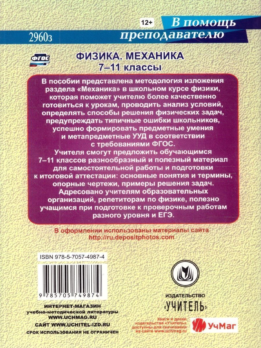 В пособии представлена методология изложения раздела "Механика" в школьном курсе физики, которая поможет учителю более качественно готовиться к урокам, проводить анализ условий, определять способы решения физических задач, предупреждать типичные ошибки школьников, успешно формировать предметные умения и метапредметные УУД в соответствии с требованиями ФГОС. Учителя смогут предложить обучающимся 7-11 классов разнообразный и полезный материал для самостоятельной работы и подготовки к итоговой аттестации: основные понятия и термины, опорные чертежи, примеры решения задач. Адресовано учителям образовательных организаций, репетиторам по физике, полезно учащимся при подготовке к проверочным работам разного уровня и ЕГЭ.Характеристики