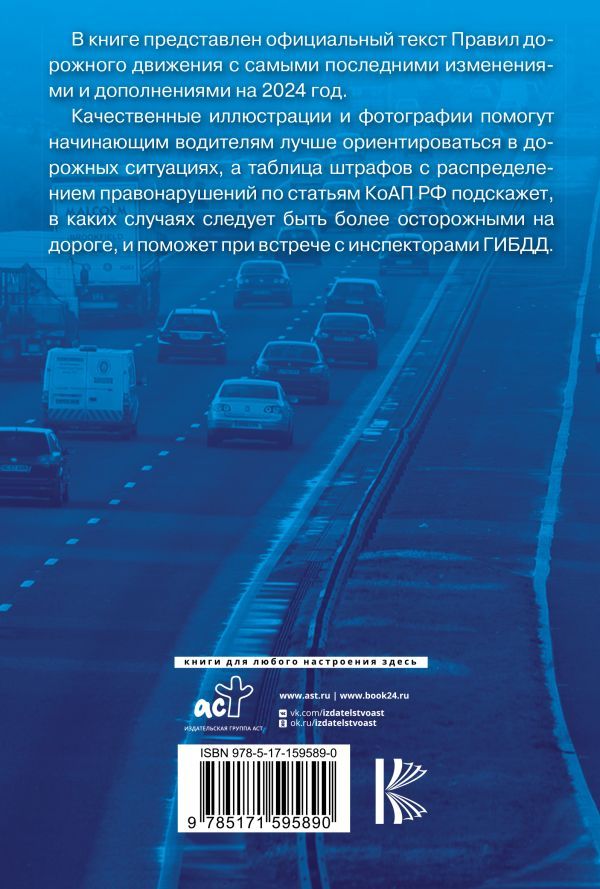 В книге представлен официальный текст Правил дорожного движения с самыми последними изменениями и дополнениями на 2024 год. Качественные иллюстрации и фотографии помогут начинающим водителям лучше ориентироваться в дорожных ситуациях, а таблица штрафов с распределением правонарушений по статьям КоАП РФ подскажет, в каких случаях следует быть более осторожными на дороге, и поможет при встрече с инспекторами ГИБДД. Издание учитывает все изменения, опубликованные в официальных источниках на момент подписания издания в печать.Характеристики