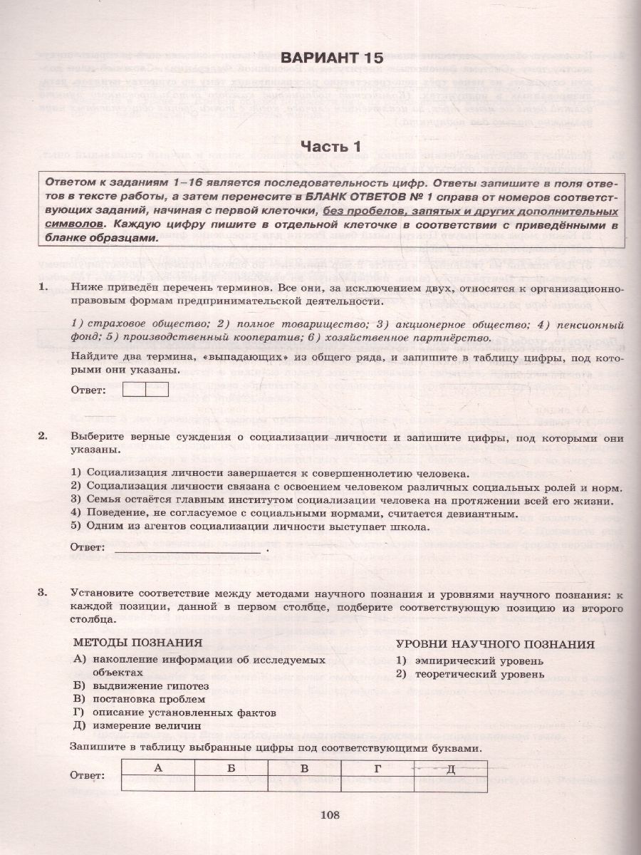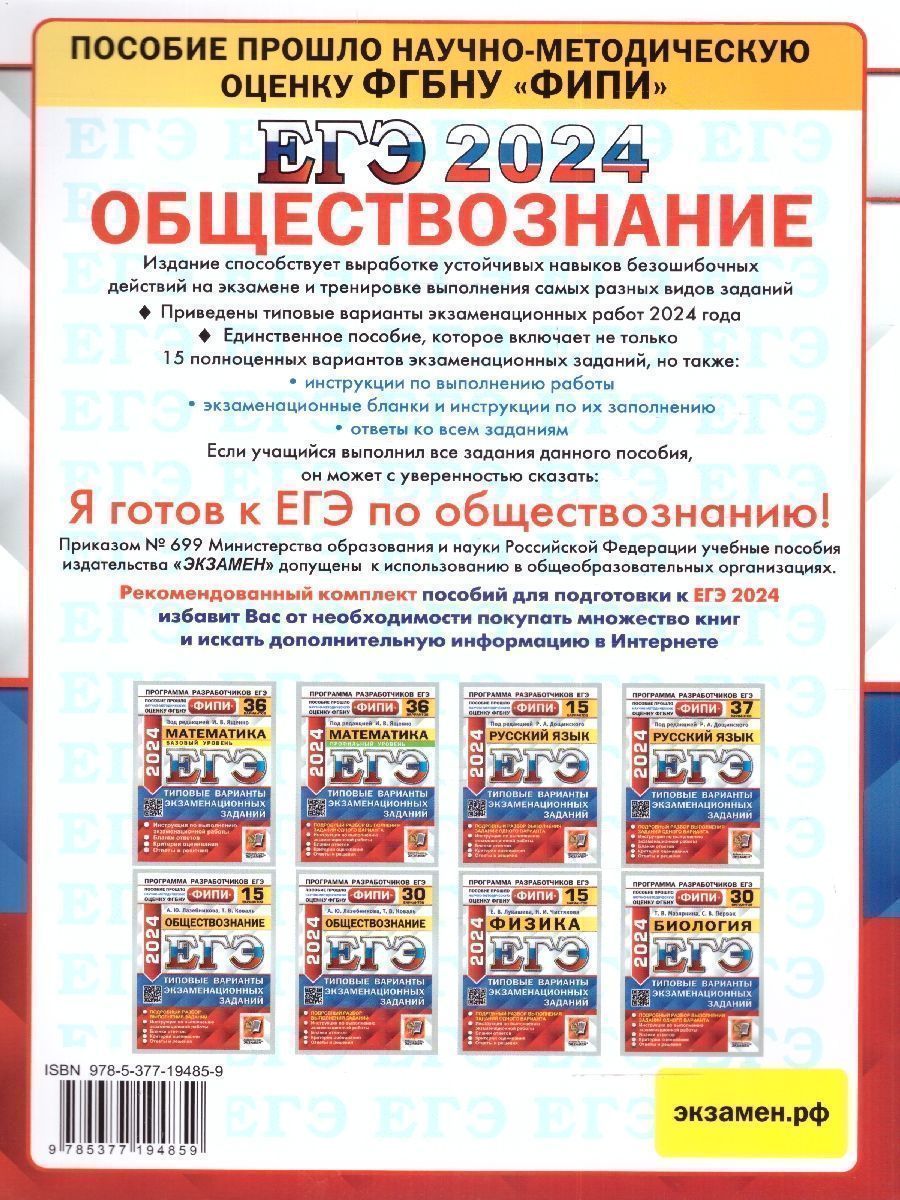 ЕГЭ 2024 Обществознание: 15 типовых вариантов заданий. ФИПИ