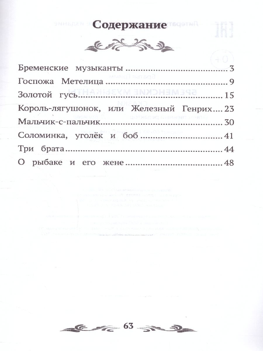 Имя сказочников братьев Гримм известно детям и взрослым во всём мире. Однако Якоб и Вильгельм были не только писателями, но и знаменитыми учёными. Они внесли огромный вклад в развитие немецкой литературы и культуры в целом: дали системное описание немецкой грамматики, начали составлять первый словарь немецкого языка (работа над ним продолжалась 120 лет), собрали множество народных сказок и легенд. Братья Гримм родились в городе Ханау, в семье адвоката. Якоб Гримм появился на свет в 1785 году, а Вильгельм - годом позже; у них было шесть младших братьев и сестра. Чтобы обеспечить детей всем необходимым, отцу семейства приходилось работать на износ, не зная отдыха. Он рано ушёл из жизни: организм не справился с воспалением лёгких. Мать мальчиков прекрасно видела, как любознательны и усердны её старшие сыновья, а потому, несмотря на финансовые трудности, отправила их учиться в лицей. Братья прошли полный курс обучения за 4 года (вдвое быстрее положенного) и поступили на юридическое отделение Марбургского университета. Там они увлеклись художественной литературой и недолгие свободные часы посвящали изучению немецкой поэзии. Позже братья Гримм начали собирать и изучать сказки немецкого народа. Якоб и Вильгельм Гримм были профессорами Гёттингенского университета, а позднее преподавали в Берлинском университете; были членами Берлинской Академии наук. Братья Гримм опубликовали более 200 народных сказок. В этот сборник вошли 8 популярных волшебных и бытовых сказок, которые учат юного читателя любить и беречь свою семью, никогда не сдаваться, полагаться на друзей и самому оставаться верным другом, а ещё - усердно трудиться, не жадничать и не проходить мимо чужого горя. Одни герои братьев Гримм это хорошо понимают, а другим предстоит пережить увлекательные и не всегда приятные приключения, после которых каждого ждёт заслуженная награда. Для младшего школьного возраста. Тексты произведений приводятся без сокращений.Характеристики