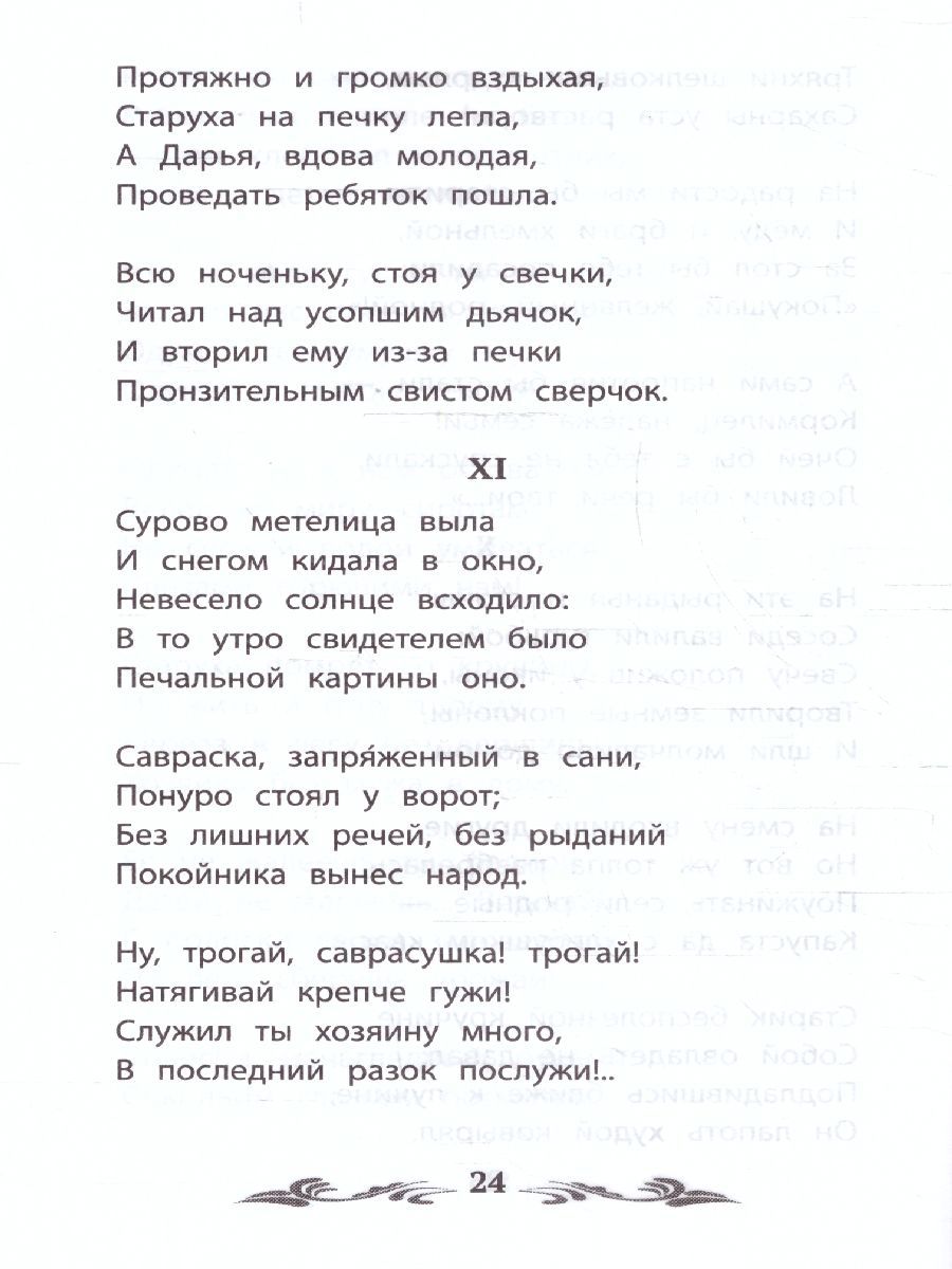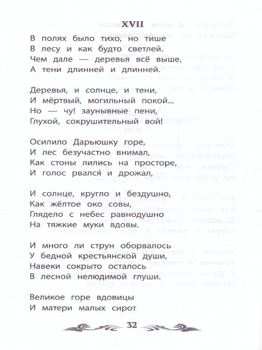 Николай Алексеевич Некрасов (1821-1878) - великий русский поэт и общественный деятель. Его перу принадлежат поэтические, прозаические и драматические произведения, и самыми известными среди них являются поэмы "Кому на Руси жить хорошо", "Русские женщины", "Мороз, Красный нос", стихотворения "Железная дорога", "Размышления у парадного подъезда", "Крестьянские дети". На протяжении всей жизни Некрасов активно участвовал в литературной жизни, причём не только в качестве автора. На страницах журнала "Современник", которым Некрасов руководил два десятилетия, а затем в "Отечественных записках", которые Некрасов издавал после запрета "Современника", впервые увидали свет многие произведения И. А. Гончарова, Ф. М. Достоевского, И. Тургенева, Л. Н. Толстого, А. И. Герцена, М. Е. Салтыкова-Щедрина, Н. Г. Чернышевского. Многим великим русским писателям и поэтам путь к широкой читательской аудитории открыл именно Н. А. Некрасов. Однако главным достижением Николая Алексеевича остаётся его поэзия. Некрасов, которого справедливо ставят в один ряд с Пушкиным, стал реформатором русского стиха и определил его развитие на десятилетия вперёд. Он ввёл в поэзию элементы народной речи, чем расширил её палитру, и первым в русской литературе заговорил для народа языком самого народа. Последовательный сторонник реформ и носитель революционного духа, Некрасов посвящал свои стихи острым гражданским темам, смело сочетая беспощадную сатиру и глубокий лиризм. В книгу вошли произведения Н. А. Некрасова, включённые в списки обязательного чтения для школьников. Органичное сочетание народности и сострадания к простым людям, столь характерное для искусства великого поэта, в этих произведениях нашло наиболее полное выражение.Характеристики