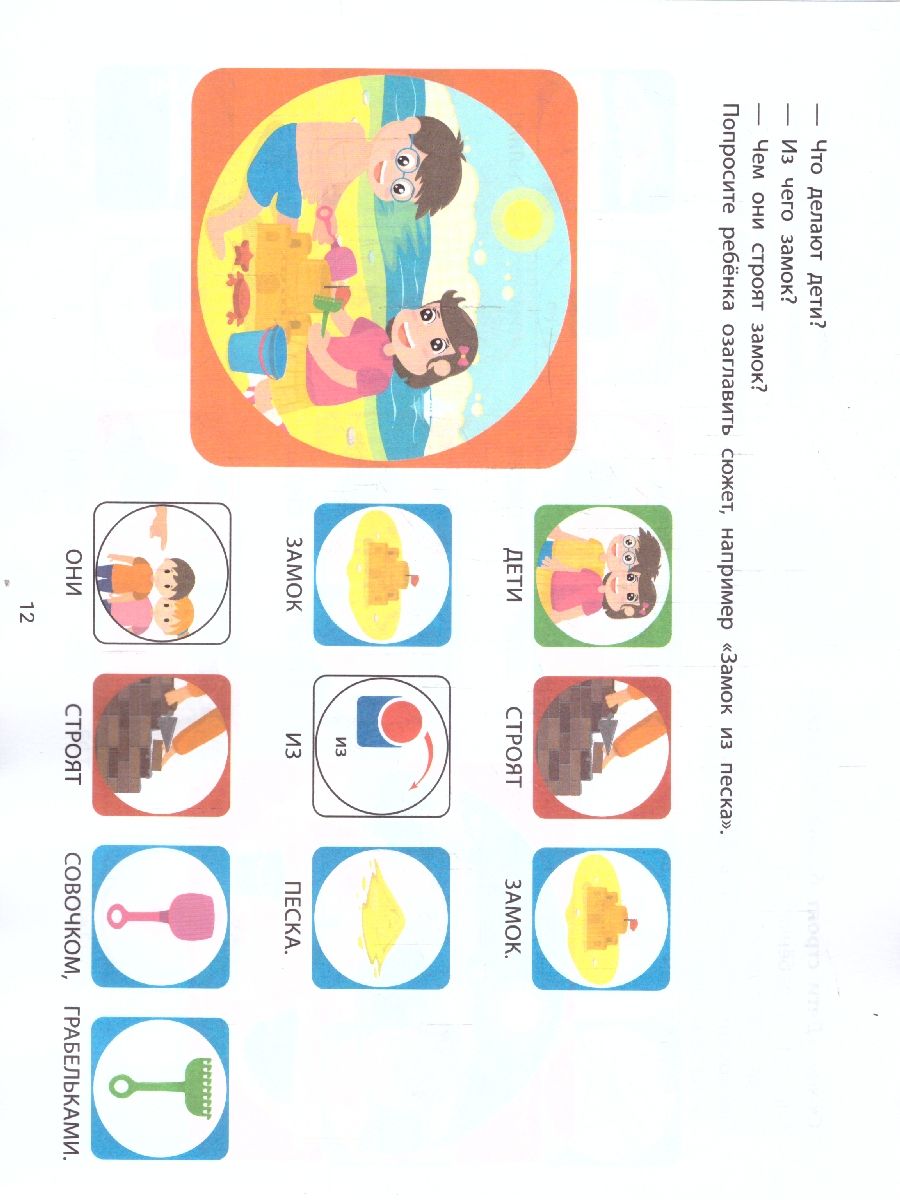 Это издание поможет ребёнку конструировать предложения и составлять рассказы по сюжетным картинкам из данного альбома. Материал разработан для детей разного уровня языкового развития, в том числе и для тех, у которых есть сложности со спонтанной речью. К каждому сюжету прилагаются фразы для чтения. Ребёнок с помощью наглядного моделирования предложения автоматизирует навык построения фраз, обогащая словарный запас и постигая азы чтения.Характеристики