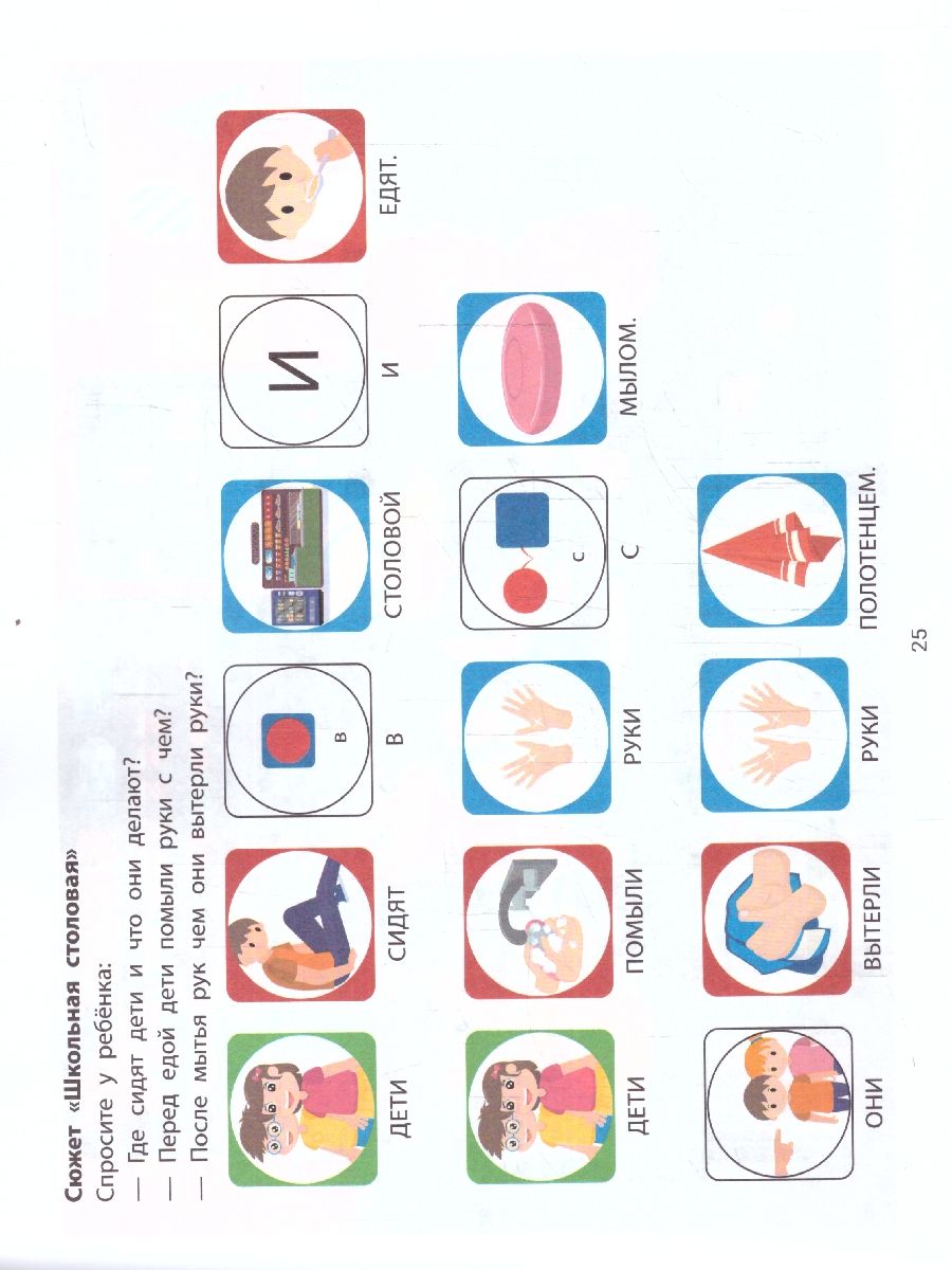 Это издание поможет ребёнку конструировать предложения и составлять рассказы по сюжетным картинкам из данного альбома. Материал разработан для детей разного уровня языкового развития, в том числе и для тех, у которых есть сложности со спонтанной речью. К каждому сюжету прилагаются фразы для чтения. Ребёнок с помощью наглядного моделирования предложения автоматизирует навык построения фраз, обогащая словарный запас и постигая азы чтения.Характеристики