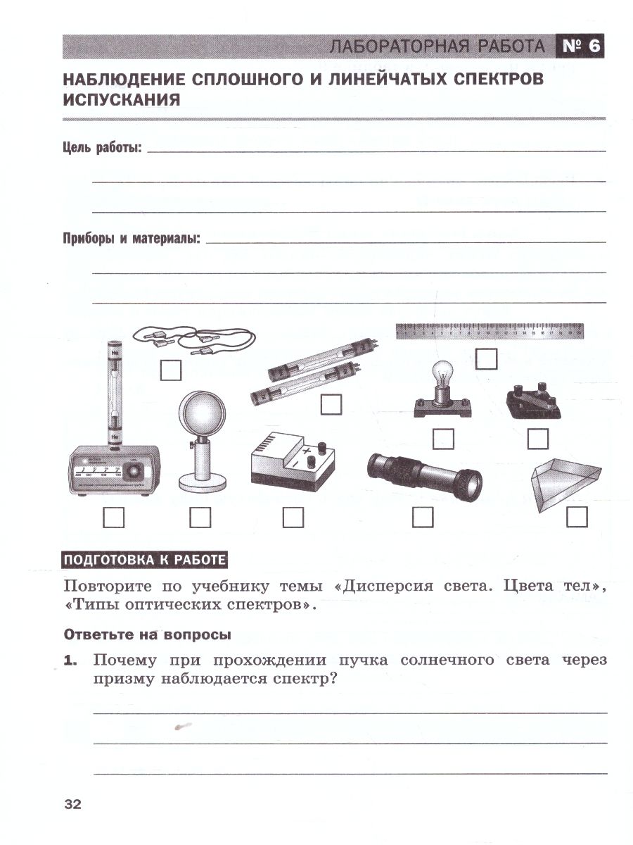 Физика 9 класс. Тетрадь для лабораторных работ. Предлагаемая тетрадь предназначена для организации работы учащихся при подготовке и проведении лабораторных работ по физике в классах, изучающих физику по учебнику И. М. Перышкина, Е. М. Гутник, А. И. Иванова, М. А. Петровой «Физика. 9 класс. Базовый уровень», переработанному в соответствии с требованиями Федерального государственного образовательного стандарта основного общего образования, утверждённого Приказом Министерства просвещения РФ № 287 от 31.05.2021 г. Тетрадь состоит из двух частей. В первой части содержится описание лабораторных работ в соответствии с учебником, во второй — описание экспериментальных заданий. К большинству лабораторных работ предусмотрены дополнительные задания, предназначенные для учащихся, интересующихся физикой. Данное пособие поможет формированию и развитию естественно-научной грамотности, умений проводить прямые и косвенные измерения физических величин, исследовать зависимость одной величины от другой, представлять полученные результаты в виде таблиц и графиков, оценивать погрешности, интерпретировать результаты и делать выводы, давать оценку своей деятельности. С помощью тетради учащиеся смогут быстро и чётко выполнить работу, сэкономив время для изучения и закрепления материала.Характеристики