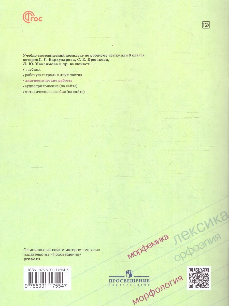Русский язык 8 класс. Диагностические работы. ФГОС