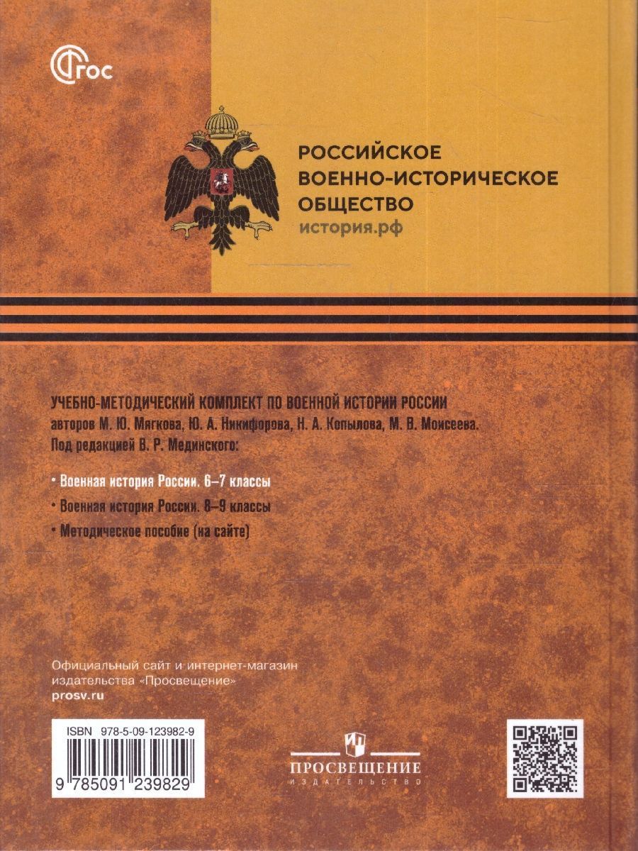 Военная история России 6-7 классы. Учебник. ФГОС. Учебник для школьников 6–7 классов открывает линейку изданий по военной истории России для учащихся основной и средней школы. Опираясь на достижения современной исторической науки, авторы излагают ключевые события отечественной военной истории. Данный учебник охватывает период с древнейших времён до конца XVII века. Учебник синхронизирован с изучением основного курса отечественной истории. Методический аппарат способствует лучшему усвоению материала. Учебник предназначен для учащихся суворовских, нахимовских, кадетских училищ, кадетских классов, для тех, кто хочет выбрать профессию военного, и также для всех, кто интересуется военной историей нашей страны.Характеристики