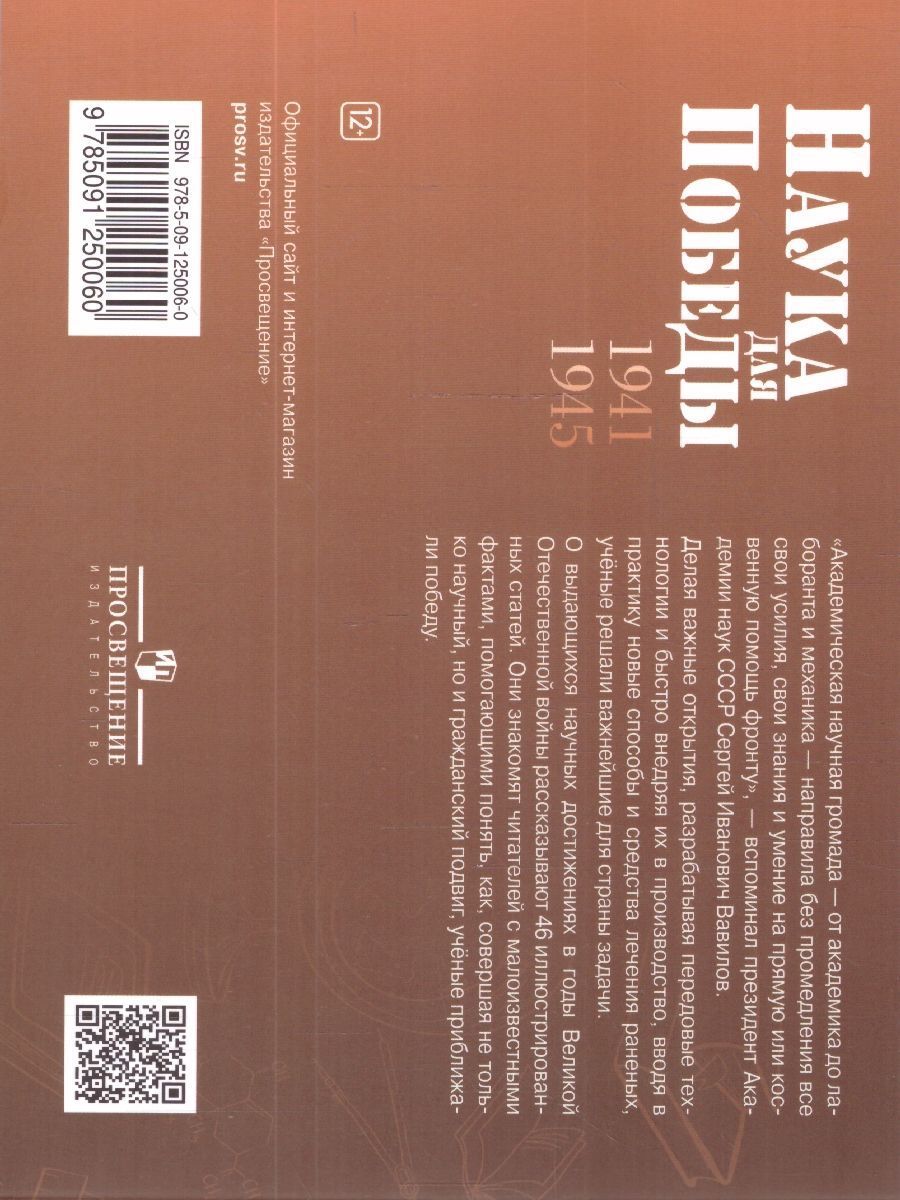 В книге раскрывается вклад советских учёных, инженеров и конструкторов в разгром немецко-фашистских захватчиков. Дано краткое описание созданных в короткие сроки новых типов вооружения и боеприпасов, транспорта, разработанных методов и средств лечения и сохранения жизни бойцам, способов повышения продуктивности сельского хозяйства, развития пищевой промышленности. Каждая статья проиллюстрирована. Учебное пособие можно использовать и на уроках физики, химии, биологии, и для самостоятельного чтения, и для выбора темы индивидуального проекта, и для семейного чтения. Книга предназначена для широкого круга читателей.Характеристики