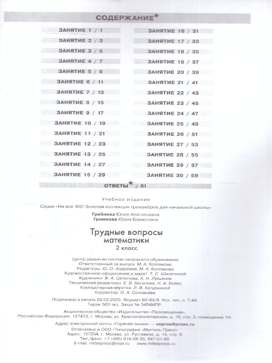 Трудные вопросы математики 2 класс. Учебное пособие. ФГОС. Пособие «Трудные вопросы математики» полностью соответствует федеральному государственному образовательному стандарту начального образования и может быть использовано на уроках и во внеурочное время. Основная цель — формирование у школьников математического мышления, логики, смекалки, умения самостоятельно добывать знания. Задания, представленные в пособии, способствуют развитию умственной активности ребят, учат их анализировать, сравнивать и обобщать полученную информацию, развивают способность решать нестандартные задачи. Книга адресована учащимся начальной школы, педагогам, родителям и может быть использована для подготовки к Всероссийским проверочным работам, олимпиадам, различным конкурсам.Характеристики