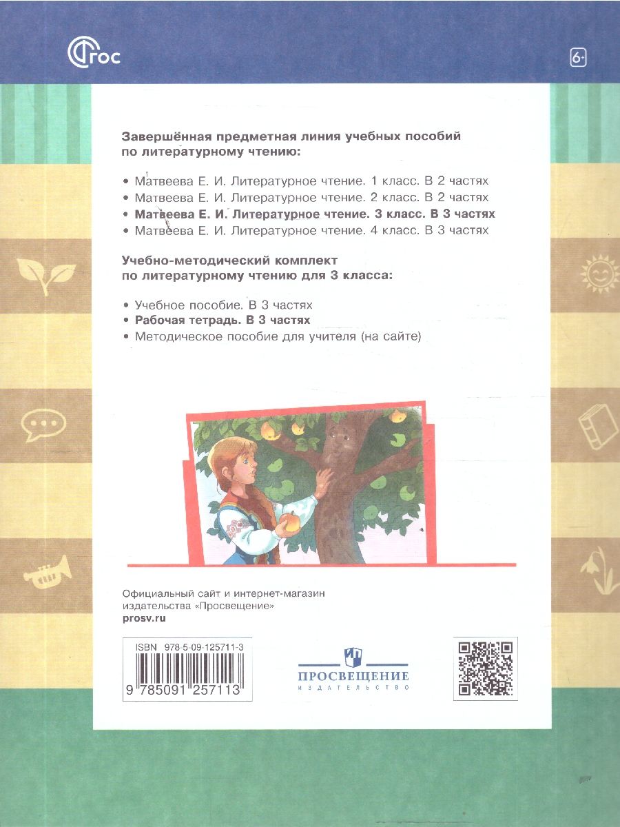 Литературное чтение 3 класс. Рабочая тетрадь. В 3-х частях. ФГОС. Рабочие тетради предназначены для учащихся 3 класса общеобразовательных школ. Они входит в учебно-методический комплект учебных пособий Е. И. Матвеевой "Литературное чтение. 3 класс". Тетради позволяют ученикам практически освоить позиции "честного" читателя и автора. Оригинальные творческие задания, содержащиеся в тетради, способствуют развитию у ребенка образного мышления, познавательного интереса, желания самостоятельно добывать знания, контролировать свои действия в работе с литературными текстами. Содержание рабочих тетрадей соответствуют требованиям ФГОС НОО 2021 г. Тетради могут быть использована в школах, работающих по любым программам обучения чтению, и при самостоятельной работе родителей с детьми.Характеристики