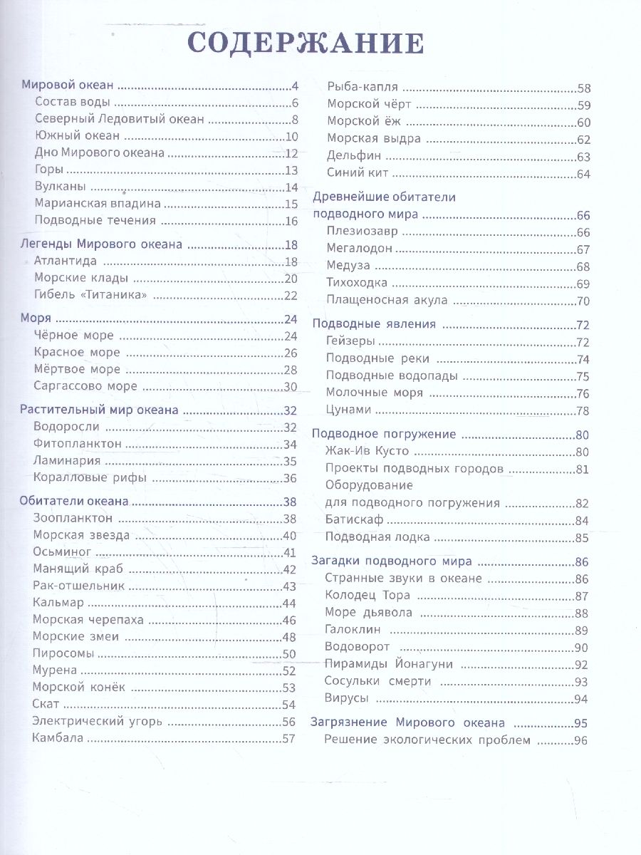 Книга посвящена подводным глубинам. Вы узнаете о морях и океанах, о населяющих их животных и растениях, а также о затонувшем "Титанике", познакомитесь с выдающимися путешественниками и исследователями. Красивые фотографии и иллюстрации помогут лучше усвоить и запомнить всю необходимую информацию.Характеристики