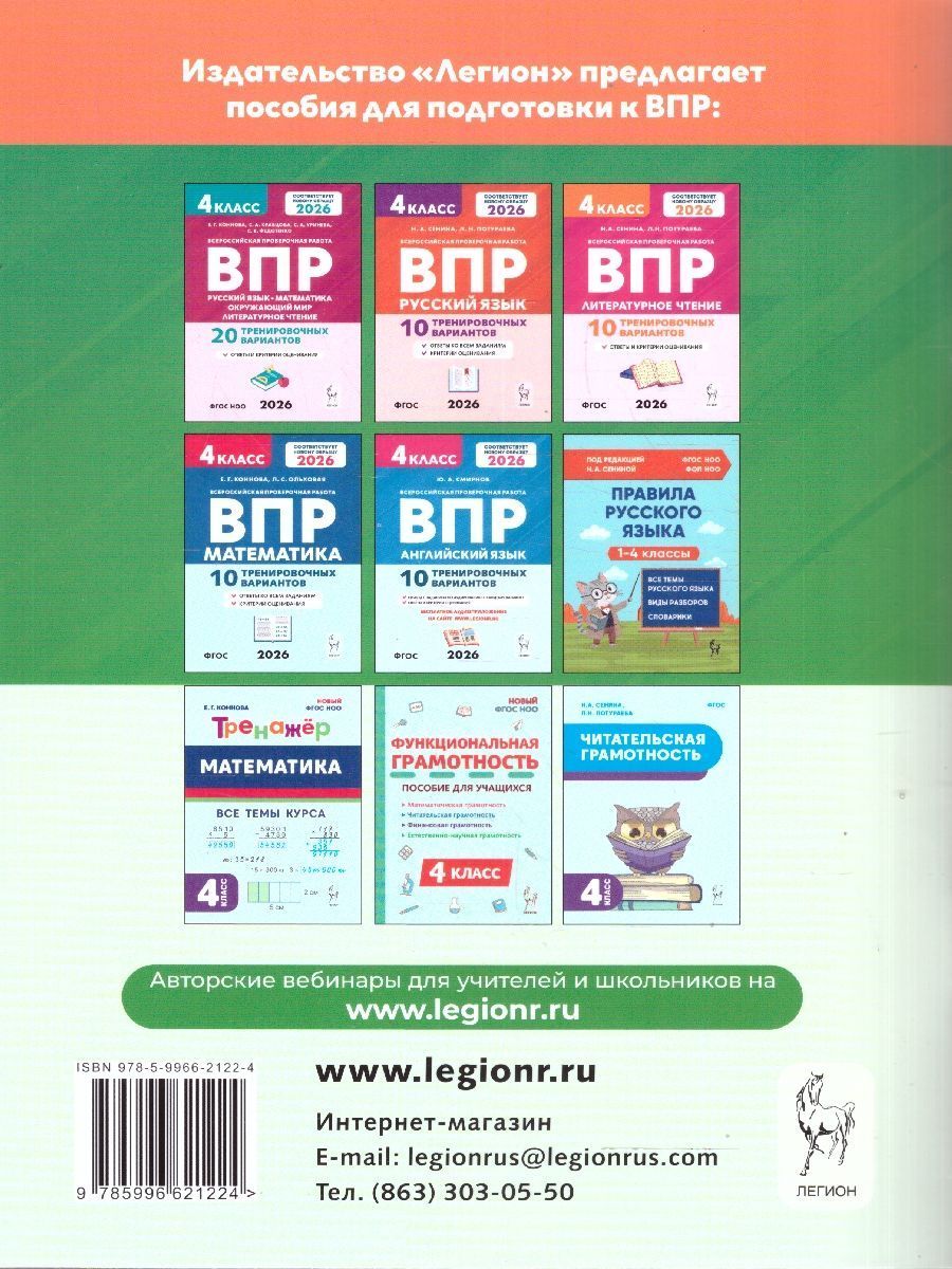 ВПР 2026 Окружающий мир 4 класс. 10 тренировочных вариантов. ФГОС Новый. Материалы пособия помогут четвероклассникам подготовиться к ВПР по предмету «Окружающий мир» и написать её на высокий балл. Пособие содержит: - 10 вариантов в формате ВПР, задания которых соответствуют образцу и описанию проверочной работы, опубликованным ФИОКО; - инструкцию для школьников; - ответы ко всем заданиям и критерии их оценивания (находятся в середине книги). Все варианты единообразно структурированы и имеют одинаковый уровень сложности. Наличие 10 тренировочных вариантов позволяет отработать навыки выполнения заданий на разном материале. Пособие адресовано учителям, четвероклассникам и их родителям.Характеристики