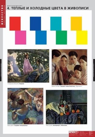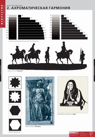 Таблицы Цветоведение 18 таблиц Комплект содержит 18 листов. Таблицы отпечатаны на плотном полиграфическом картоне 250-280 гр./м2, форматом 68x98 см. Печать односторонняя. Мелование одностороннее. Красочность 4+0(полноцвет). В комплект альбома входит брошюра с методическими рекомендациями для учителя Состав комплекта: Цвета и акварель. Ахроматическая гармония. Типы смешения красок. Теплые и холодные цвета в живописи. Цветовой тон. Светлота и насыщеность. Перспектива в живописи. Светотени в сюжетных композициях. Восприятие контрастов. Гармонизация цвета. Классификация цветовых гармоний. Цветовая композиция. Колорит. Значение цвета. Символика цвета в иконописи. Цвет в интерьере. Круг естественных цветов по Гёте. Цветовые системы Рунге и Освальда. Цветовая система Менселла. Цветовая система в полиграфии.Характеристики