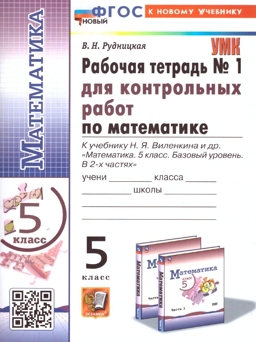 Математика 5 класс. Базовый уровень. Рабочая тетрадь № 1 для контрольных работ к учебнику Виленкина. ФГОС НОВ. К новому учебнику