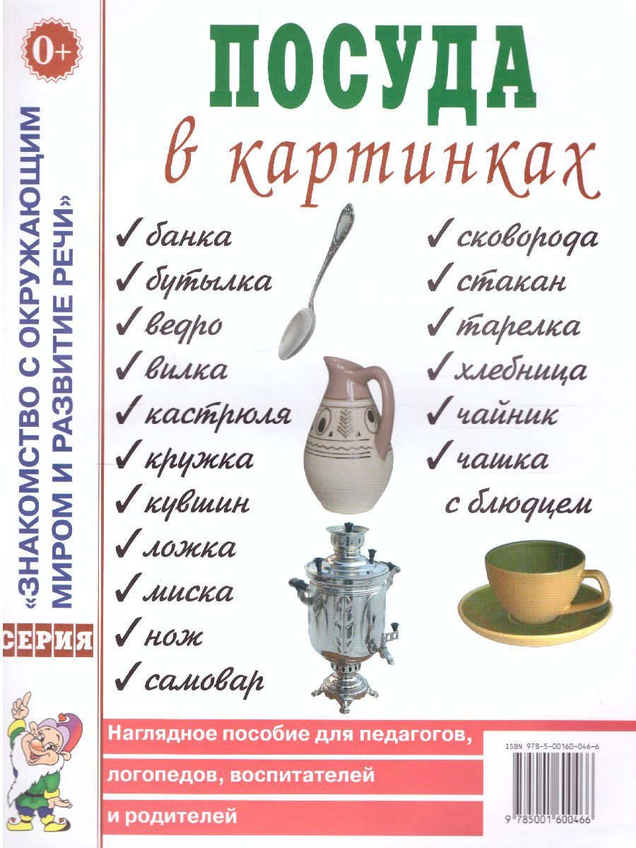 Посуда в картинках. Наглядное пособие для педагогов, воспитателей, логопедов, родителей