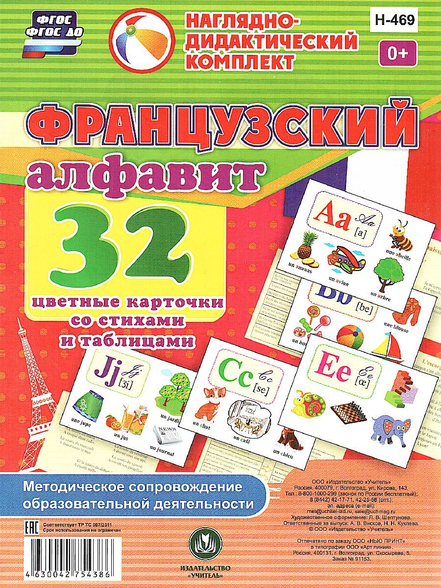 32 карточки со стихами и таблицами. Французский алфавит. Методическое сопровождение образовательной деятельности