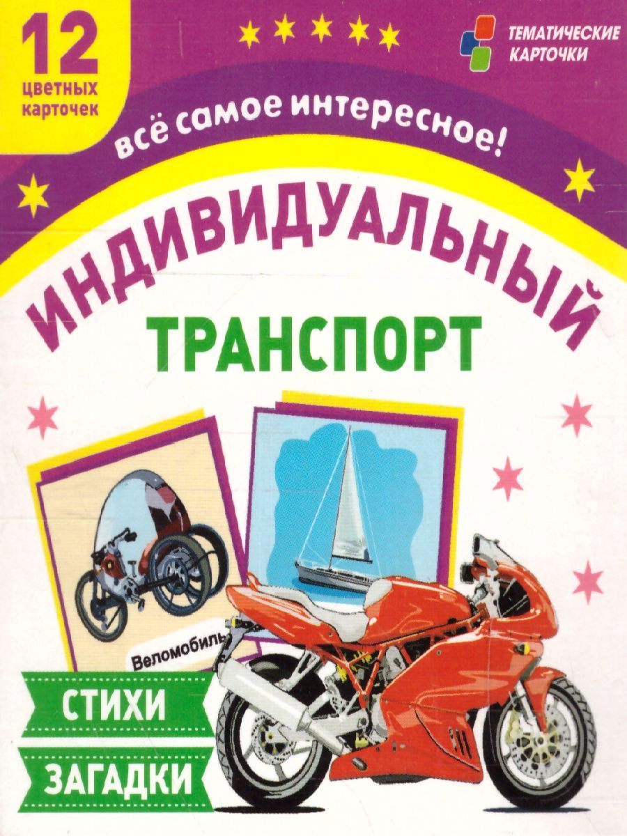 12 карточек для занятий с детьми. Транспорт индивидуального пользования. Стихи, загадки