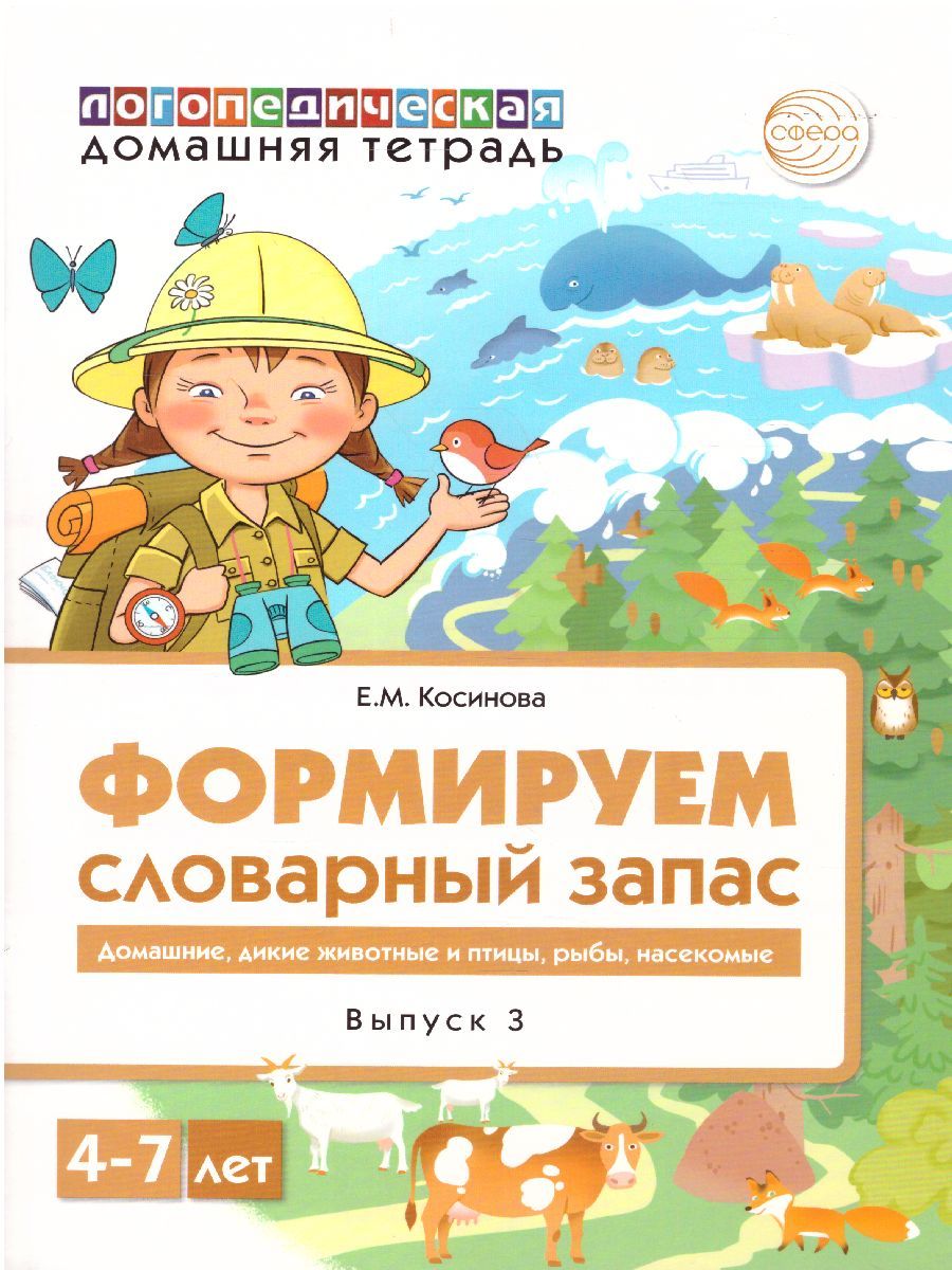 Домашняя логопедическая тетрадь. Формируем словарный запас. Домашние, дикие животные. Тетрадь 3
