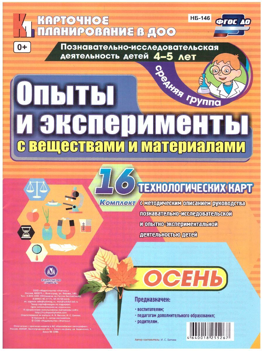 Познавательно-исследовательская деятельность детей. Опыты и эксперименты с веществами и материалами. Осень. Средняя группа 16 карт
