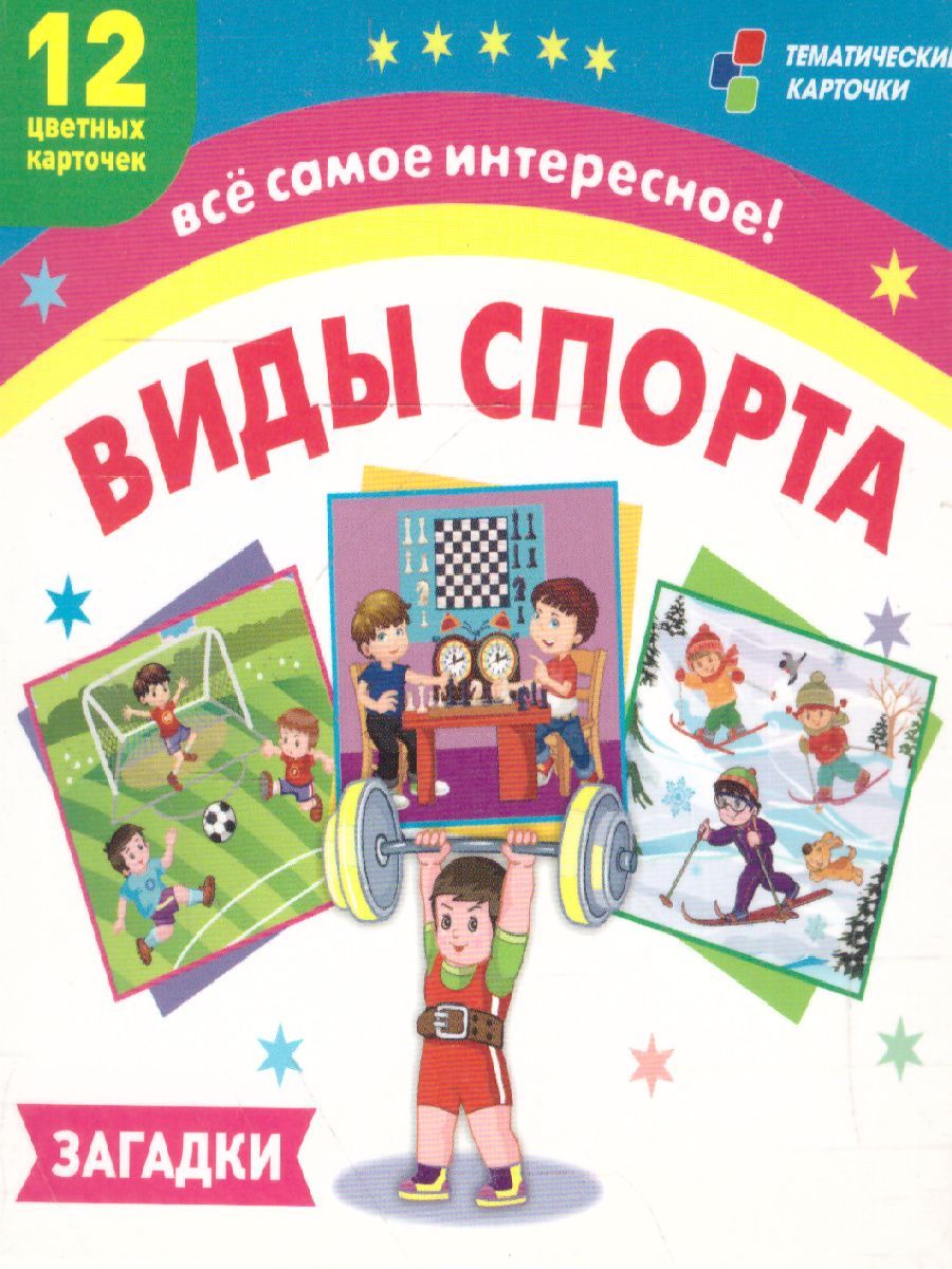 Виды спорта. 12 развивающих карточек с красочными картинками и загадками