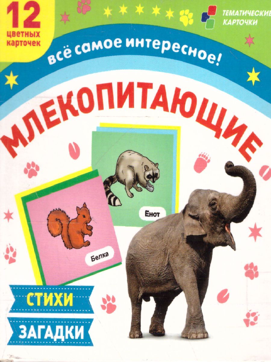 12 развивающих карточек. Млекопитающие. С картинками, стихами и загадками