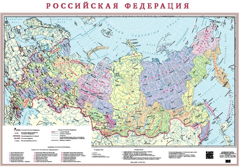 Политико-административная карта Российской Федерации с интерактивным описанием в электронном виде (QR-кодом) на баннерной ткани