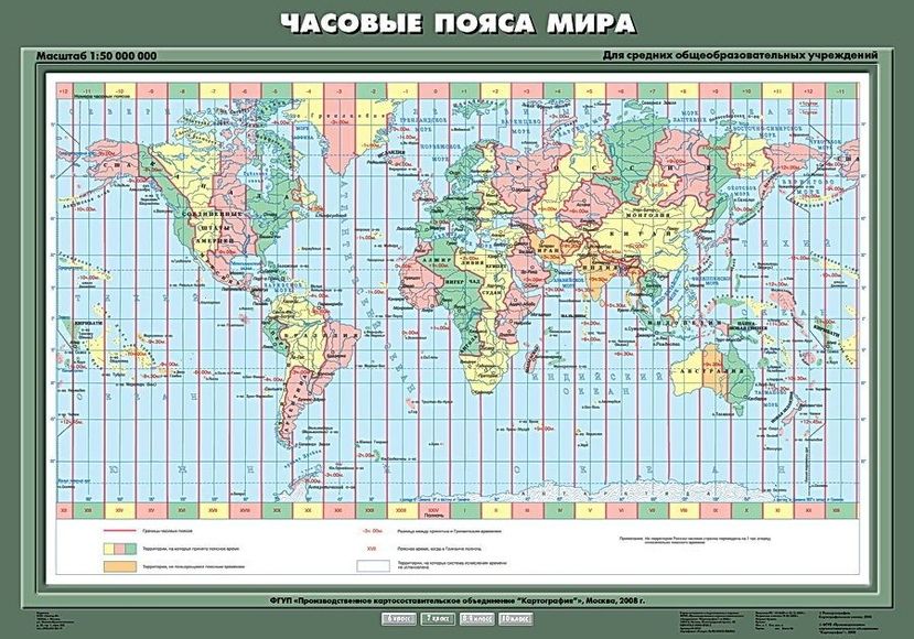 Карта География 7 кл. Часовые пояса мира (70х100) (Спектр-М)