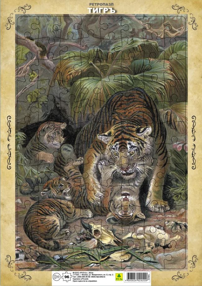 Ретропазл на подложке. Тигр. С гравюр художников XIX в