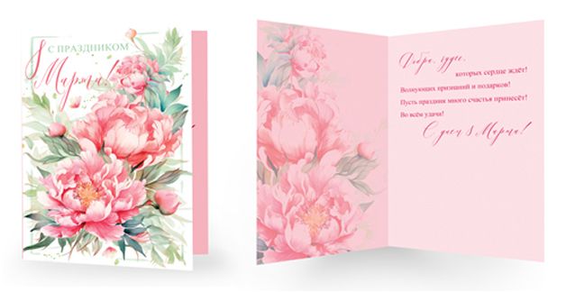Открытка среднего формата. С праздником 8 марта! Текст
