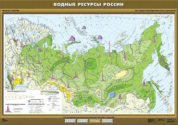 Карта География 8 -9 кл. Водные ресурсы России (100х140) (Спектр-М)