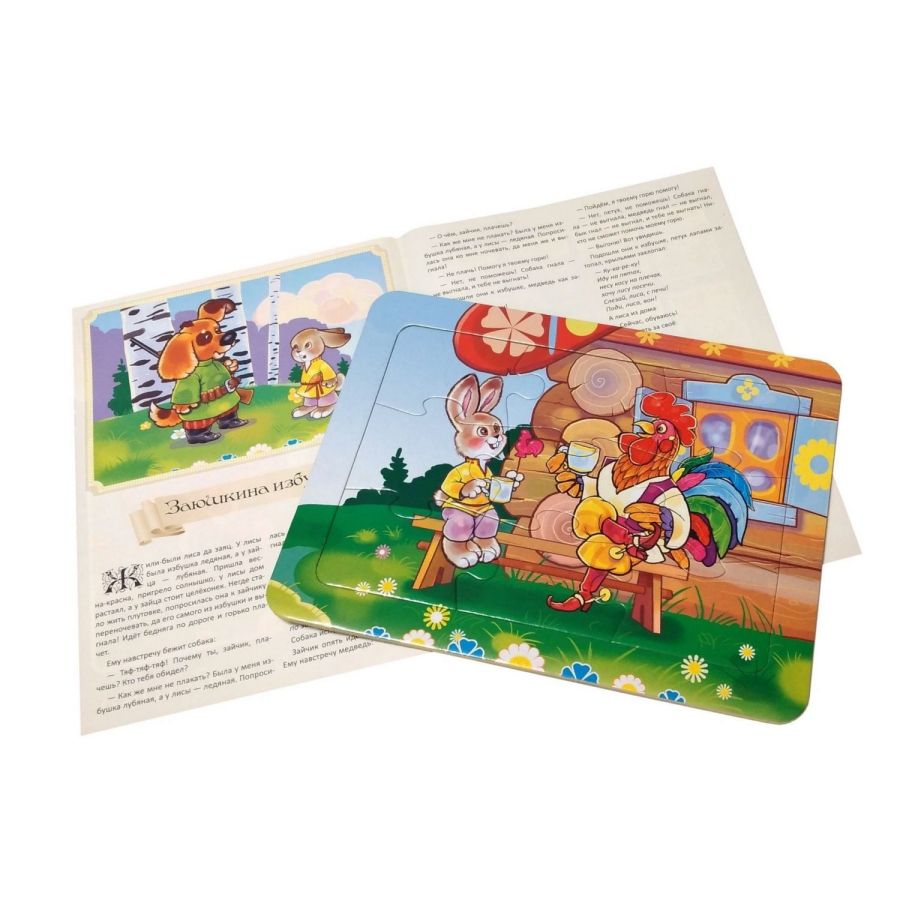 Пазл сказочный "Заюшкина избушка". 9 деталей + сказка