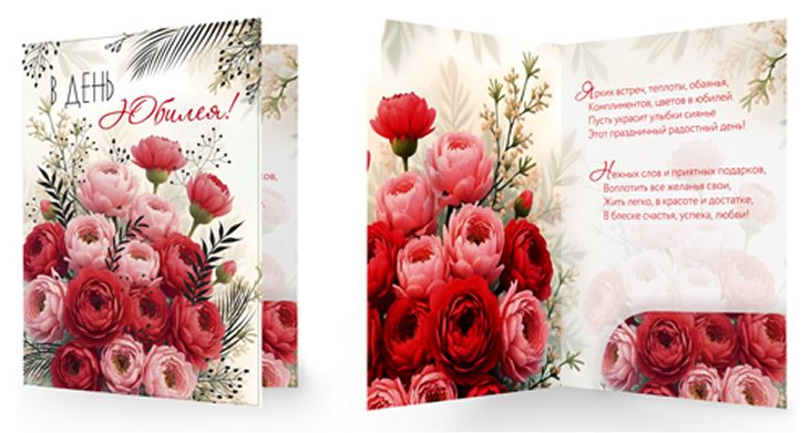 Открытка А4 с клапаном для денег. В день Юбилея! (золотая фольга, женская)
