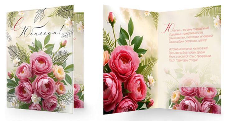 Открытка А4 с клапаном для денег. С Юбилеем! (золотая фольга, женская)
