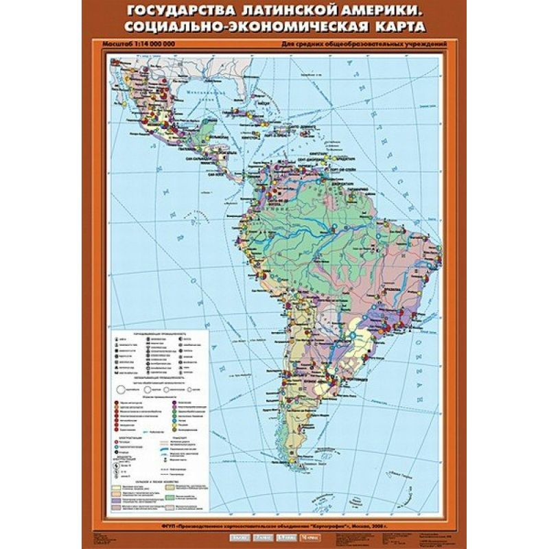 Карта География 10 кл. Государства Латинской Америки. Соц-эконом. карта (70х100) (Спектр-М)