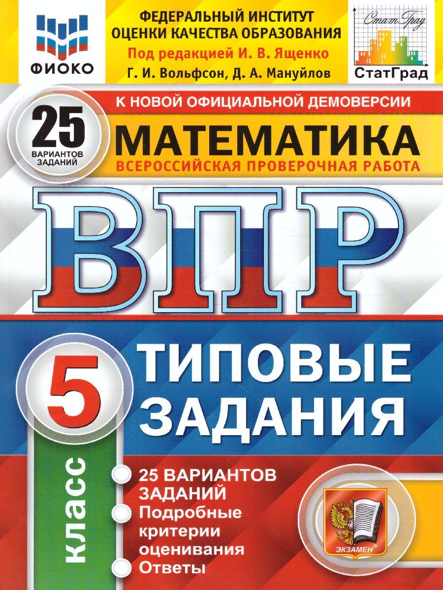 ВПР Математика 5 класс. 25 вариантов ФИОКО СТАТГРАД ТЗ. ФГОС